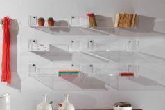 Room-waiter with frame of epoxy powder painted metal, details of chromed and opaline methacrylate, in paline white, red and transparent.
