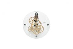 Design and art cross paths in a new dimension that's light and ethereal. This timepiece breathes new life into a space, becoming its focal point. A completely milled wall clock that provides flawless time and finely crafted details. The low-friction mechanism utilizes a drive that weighs just 2 kg. Two crystal discs protect the timepiece. Since they are truly crystal clear, one can see the inner mechanism with its diamond-like coating, or DLC, in black. This state-of-the-art, carbon-based coating ensures extended performance and low friction. Even the spacers that separate the two sheets are handcrafted masterpieces: lathed transparent crystal.