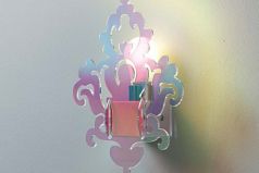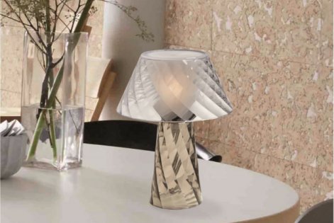 Lamps in methacrylate structure featuring chrome-plated details. Available in the following colours: e-flash, spectrall, opaline white, red, transparent, cromolite and gold