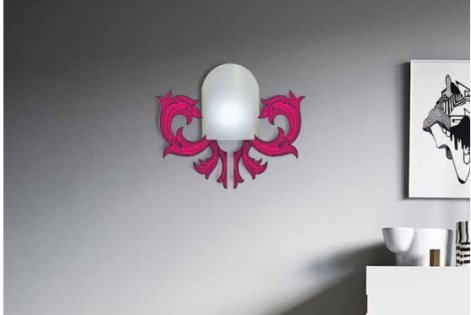 Methacrylate lamp in natural opal. Black decorations on coloured background available in white, green, yellow, orange, violet, red or blue. Chrome plated and white coated details, lampshades made of Polypropylene.