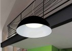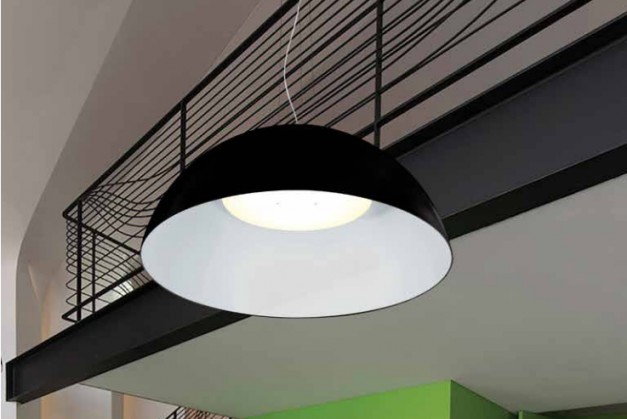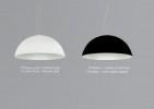 Three lights big suspension lamp. Methacrylate dome 8mm thickness. Available colours: opal Diffuser or painted under request. White coated metal fittings and details.