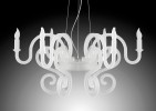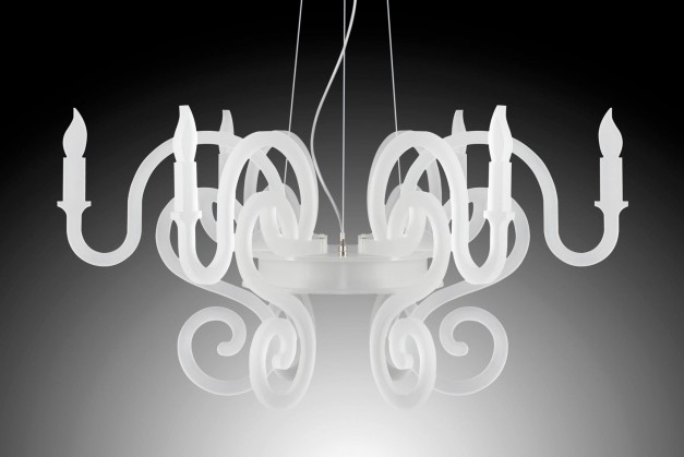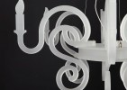 Majestic and elegant chandelier decorates any spaces with a touch of personality. This design lamp is an original and modern reinterpretation of Baroque chandeliers. Characterised by sinuous and sophisticated design, made entirely of white satin methacrylate. 127cm DIA x 65cm H