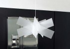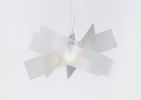 Suspension lamp featuring metal fitting with white coating. Lampshade of methacrylate, available in the following colours: e-flash, cromolite, gold, red, opaline white and in spectrall methacrylate.
