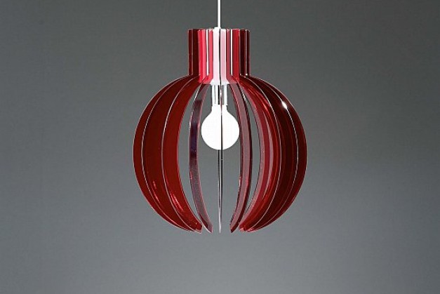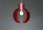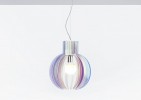 Suspension lamp featuring metal fitting with white coating. Lampshade of methacrylate, available in the following colours: e-flash, cromolite, gold, red, opaline white and in spectrall methacrylate. Chrome-plated details.