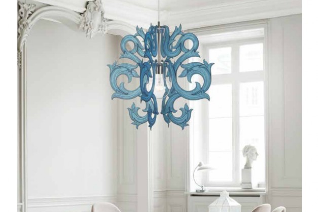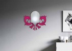 Methacrylate lamp in natural opal. Black decorations on coloured background available in white, green, yellow, orange, violet, red or blue. Chrome plated and white coated details, lampshades made of Polypropylene.
