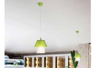 Suspension lamp in acrylic material. Available in colours; transparent, green. red, blue and smoked. Chromed metal fitting elements.