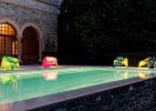 Light and color are “spun” by the artist Jacopo Foggini in this indoor-outdoor chair. The plastic thread of translucent polycarbonate in fluo tones of bright green, petroleum blue/lemon yellow and fuchsia, is positioned by hand and skillfully shaped to make this strong, semi-transparent chair.