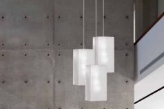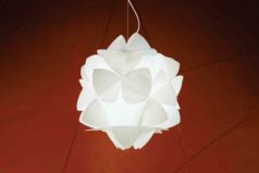 The Cotton light designed by Letizia Mammini available as a pendant, table lamp or wall light in White, Purple or Grey.