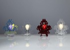 Methacrylate table lamp. Available in the following colours: cromolite, gold, e-flash, opaline white, red, transparent and in spectrall methacrylate. Chrome-plated metal parts and base with details coated white.