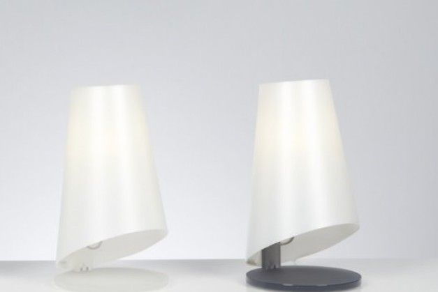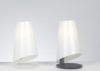 Table lamp. Conical lampshade of polypropylene in pearl white colour featuring methacrylate fittings available in the following colours: matt gray, matt white.