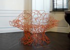 The hundreds of weld points have been cleaned, smoothed and then brushed to avoid roughness or sharp spots: a work of great complexity and skill that takes an entire week for each unit. Perfect for both indoor and outdoor use. The time required for the crafting of the chair is approximately one week. Finished with epoxy coating in the colors coral, white and black.