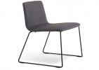 Lounge version armchair featured by soft and essential shapes. Upholstered shell covered with fabric or simil leather, steel rod Ø 11 mm frame. The large seat, 615 mm wide, guarantees high levels of comforts.