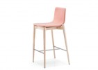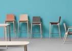 Malmö family expands to new contexts entering in lounge environments, waiting areas and cafes. Barstools are made of solid ash wood bleached, black or grey stained finish, ash veneered plywood shell. Available in two height and with upholstery.