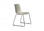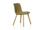 Techno polymer shell with option of upholstery and with a timber four leg or sledbase frame.