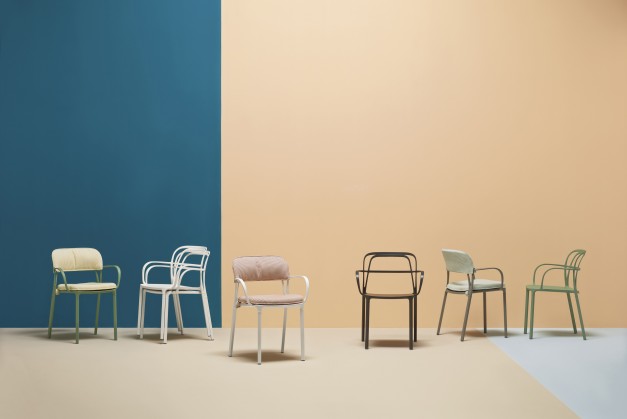 A combination of lines which twist harmoniously creating an involving, minimal silhouette. The efficient die-casting aluminium technology guarantees solidity and allows to achieve different sections for back, armrests and legs. Intrigo is an elegant seat which easily fits into very different environments.