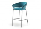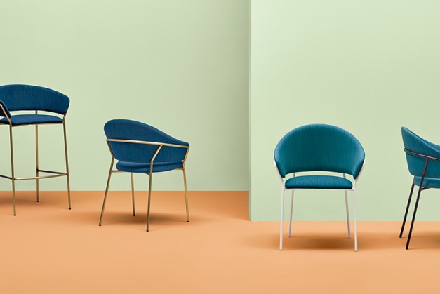 Harmony of shapes, elegance and ergonomics are the main features of Jazz armchair. A cosy seat, a curved and embracing backrest, supported by a thin steel frame Ø16mm, guarantee a great balance of proportions and profiles. Seat and backrest are separated by an opening that makes the armchair functional and gives lightness. A high level of customization is possible thanks the combinations of the upholstery, in fabric or leather, and the different finishes of the steel.