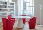 Log is a collection of completely upholstered seatings which marries a sculptural aspect with surprising lightness. The lounge version reinterprets the volumes of the armchair, softening the shapes and giving them generous sizes. Stiff polymer frame covered by fire-retardant injected foam upholstered in fabric or simil leather.