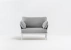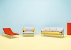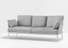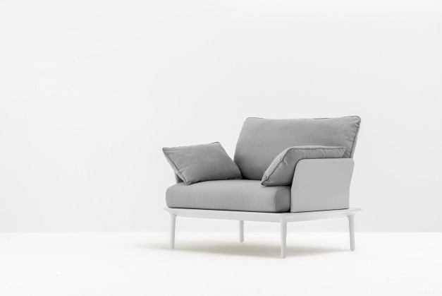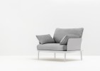 Reva is an outdoor collection with smooth lines and generous sizes. Lounge chair and three-seat sofa with a thin extruded aluminium frame supported by four tapered die-cast aluminium legs that underline its clean design. Cushions in water-repellent fabric and polyurethane foam inside.