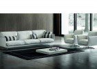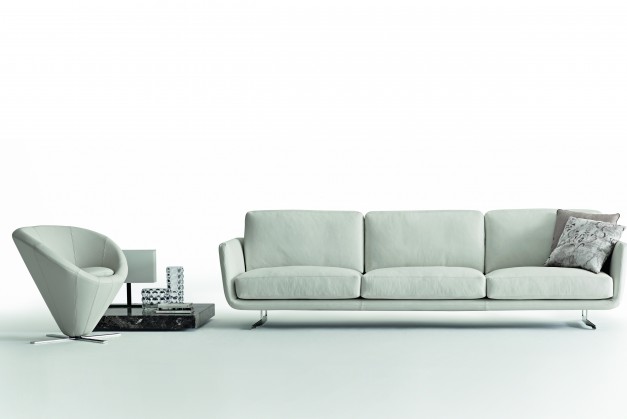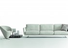 Structure in painted metal guaranteed for 10 years. Visible feet in chrome-plated or burnished steel. Different density polyurethane foam padding covered in double acrylic fibre. Seat and back cushions in goose down with internal support in polyurethane foam. The covers can be removed from all pieces.