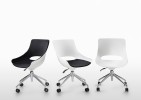 The chair shell is a complex injection moulding that was carefully developed through many iterations, from card and paper models, CNC foam and fiberglass prototypes prior to investment in tooling. Recycled and recyclable materials are used throughout, using Computer Aided Design to minimise their volume without compromising the structure.