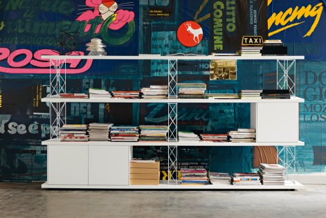 he modular system “Side System” evolves to new and completely original design themes than regular products for the furniture of living area. The wall compositions, while remaining faithful to their graphic line of continuity between the elements, offer variations that can be defined unstructured in their stylistic unity. The doors without a handle covers more compartments, the thickness of the containers by alternating the sign of thin to the strong sign, the woods and lacquers underline the valuable surfaces where the colour of the wood veneer plays an essential role in interior design.