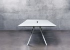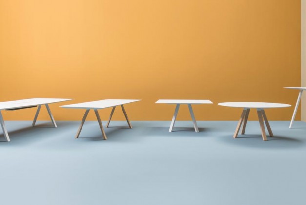 Industrial look, rigorous shapes and versatility. The Arki-Table family has been enriched by three new versions, that still keep the extremely thin tops and the peculiar structure with trestle legs.