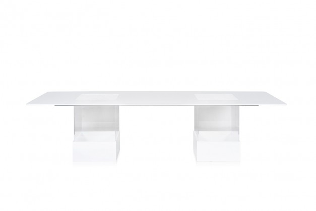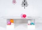 Plexiglas table with 2 accessible cubic containers. The physical and technical characteristics of Plexiglas make it suitable both for indoor and outdoor use. The brightness remains constant over time. 100% recyclable.